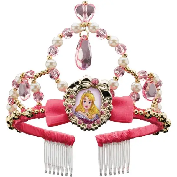This charming princess tiara inspired from the Disney movie, Sleeping Beauty, is the perfect accessory to your Disney Princess Aurora costume. Add a royal and glamourous look to your fairytale character look with this princess crown. The Disney Princess Aurora Classic Tiara features a pink tiara with plastic combs, Aurora character cameo and decorative beads. One size fits most children.