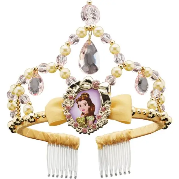 Inspired from the Disney movie, Beauty and the Beast, this adorable Princess Belle Tiara will add a magical touch to your princess costume. The Disney Princess Belle Classic Tiara features a golden yellow tiara with plastic combs, Belle character cameo and decorative beads. One size fits most children.