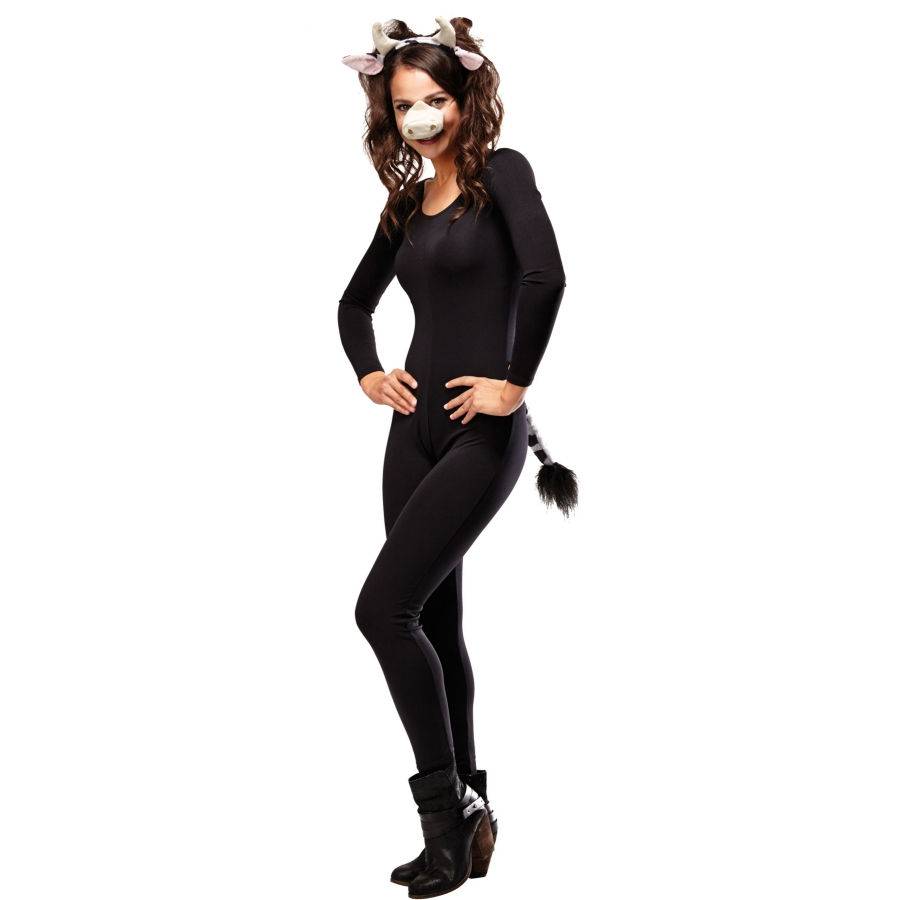 COW KIT. Unique kit includes a cow-print headband with ears and horns, a matching tail with tuft, and cute cow nose. One size fits all.