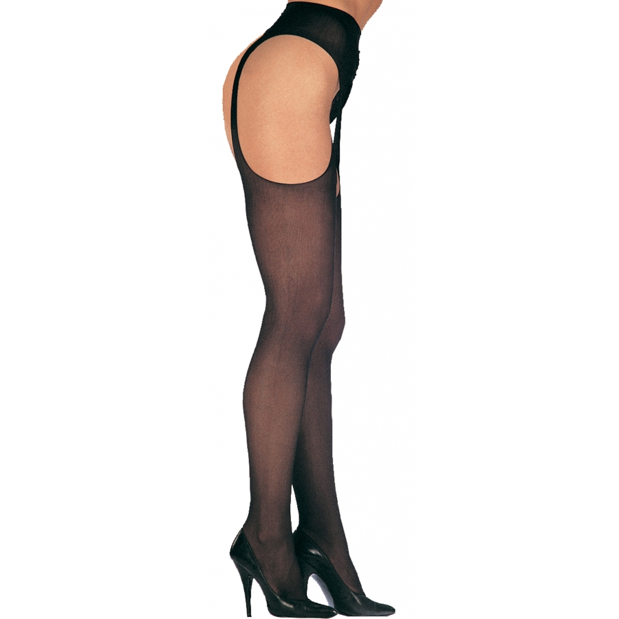 SHEER SUSPENDER PANTYHOSE PLUS. Sheer stockings with suspenders made into waistband. Plus size fits 18-24.