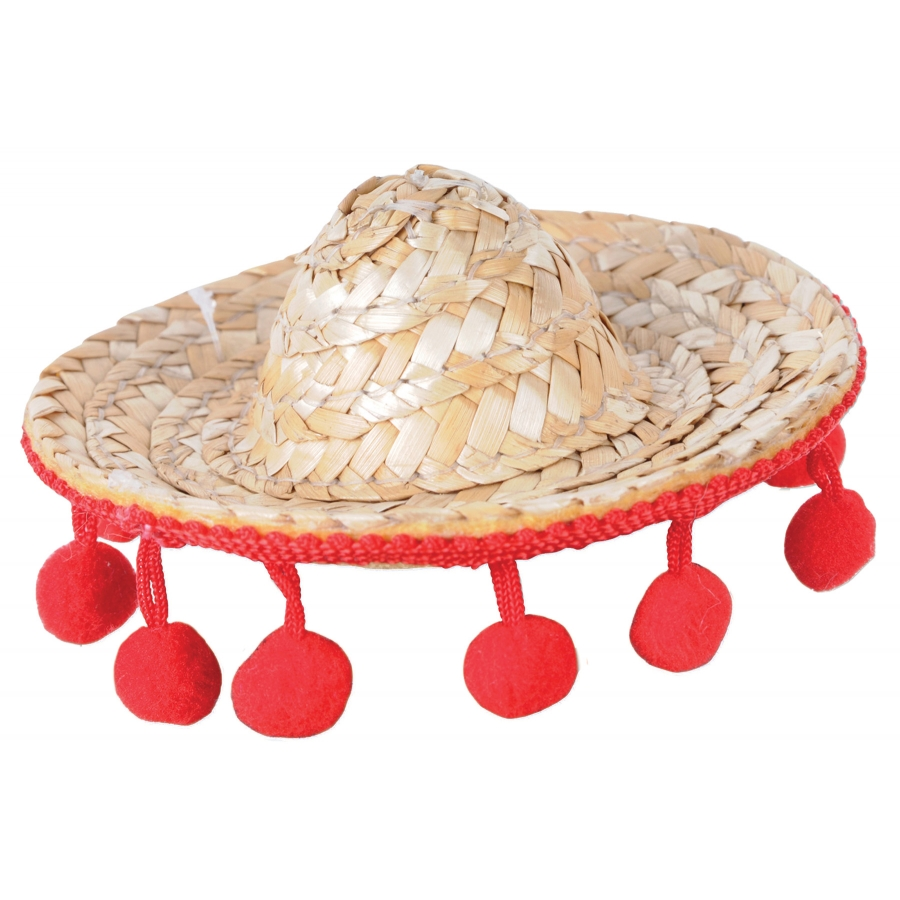 SOMBRERO HAIR CLIP. A great accessory for your Cinco de Mayo costume or just for everyday wear, this hairclip shaped like a sombrero also has red tassels hanging from it! Straw. One size fits most.