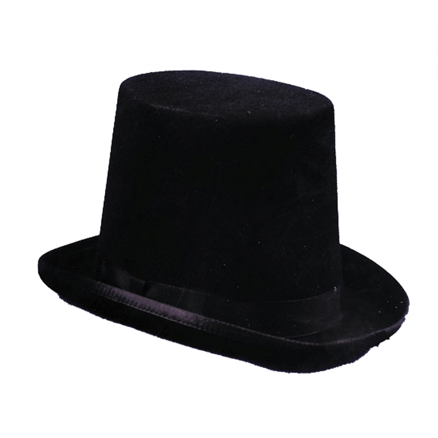 STOVEPIPE QUAL MEDIUM. In the Lincoln tradition is this fine quality wool stovepipe hat with cloth band. Brim 2 inches, height 6 1/2 inches. Medium.