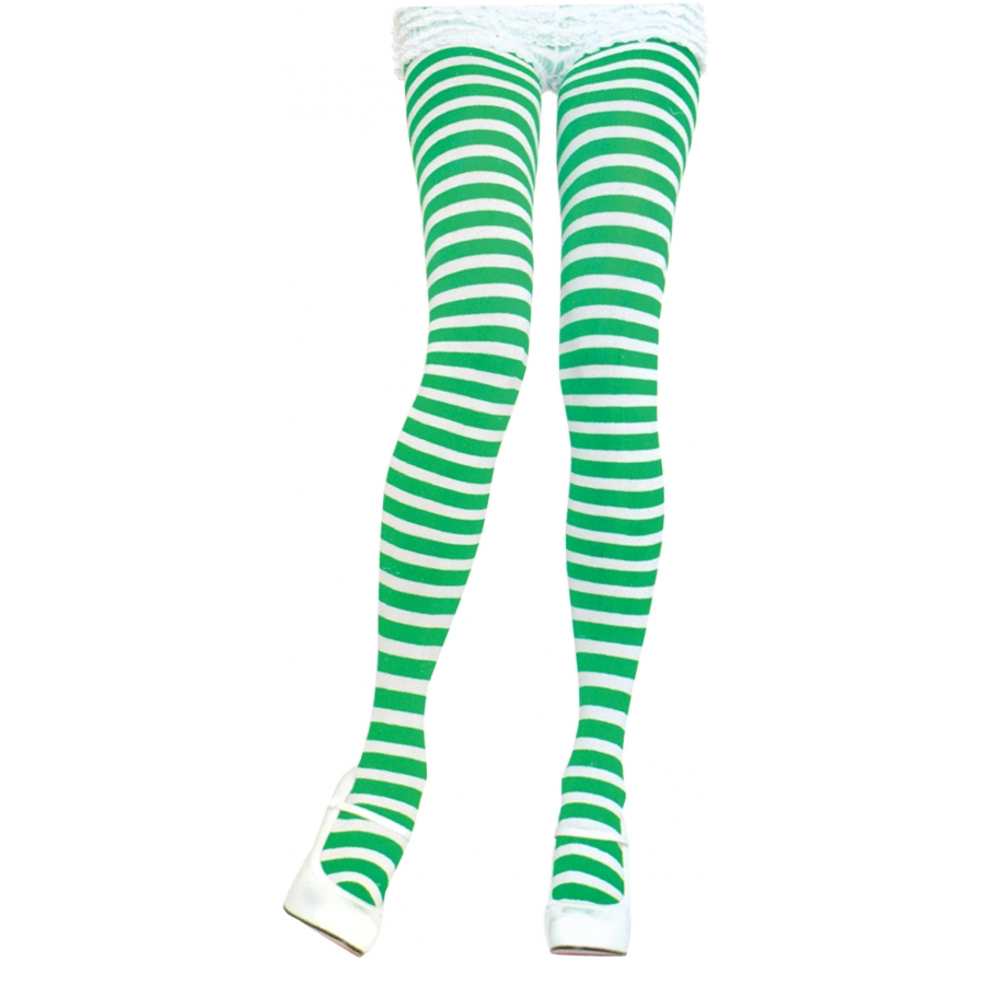TIGHTS STRIPED GREEN/WHITE. These tights will spruce up any number of costumes. One size fits most.