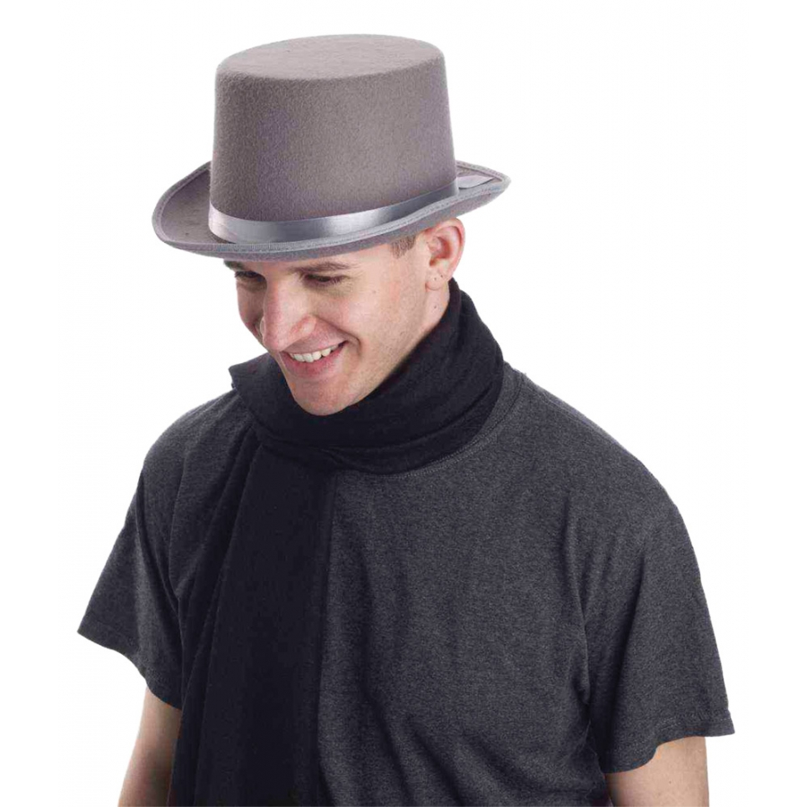 TOP HAT GREY ADULT. A great all-purpose top hat for many different uses. Looks great as an accessory to a Dickens costume, great for period plays for school or church. Grey. One size fits most adults.